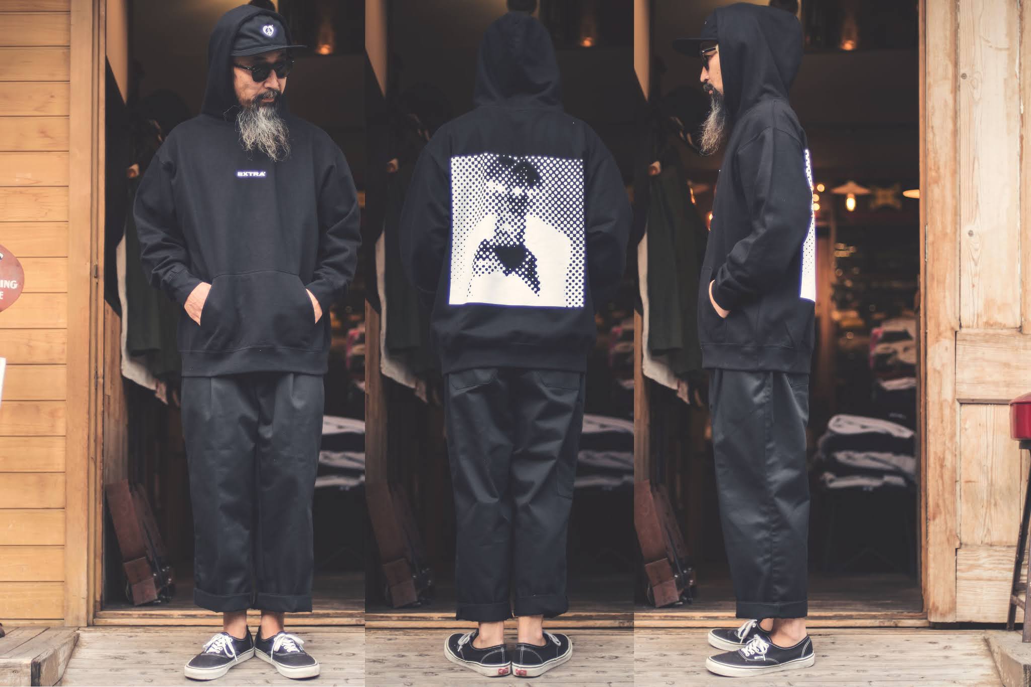 生地はヨーロッパミリタリー物を使い、たっぷりした腰回りから裾にかけて若干テーパードした極太シルエットです。