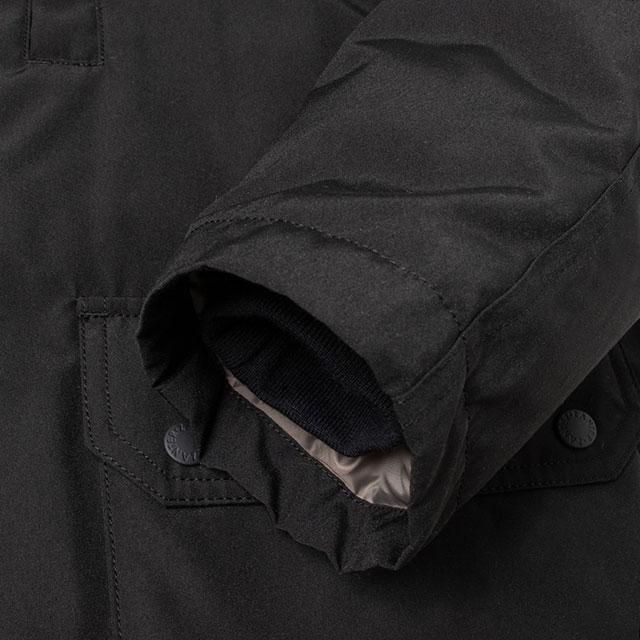 表素材は、軽量でありながら、肉厚感もあり高級感のあるポリエステル×コットンの高密度織物を採用し、裏素材はダウンの暖かさを肌に感じさせる高密度ポリエステルを採用。袖口内には、冷気をシャットアウトするリブが内蔵されています。