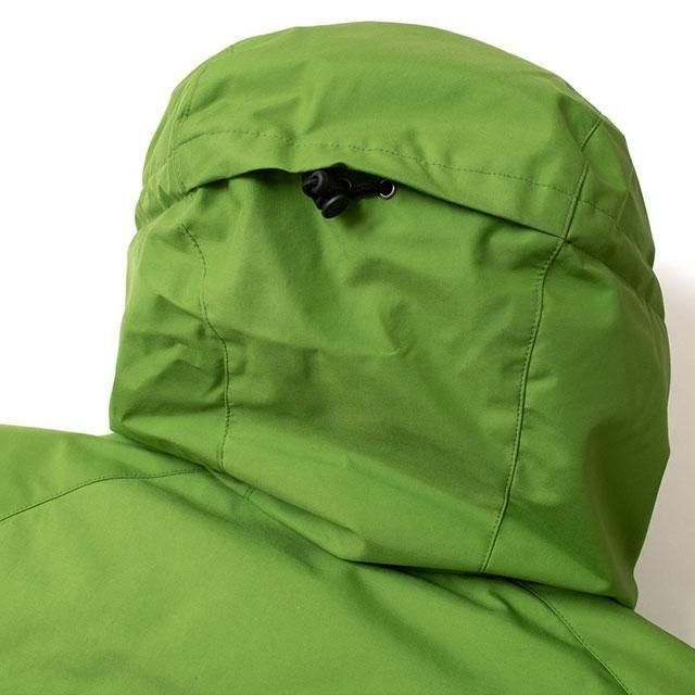 風や雨雪の侵入を防ぐダブルフロント仕立てや、ヘルメットを着用したままでも被れる大きなフード、手袋の上からしっかり被せ、マジックテープでがっちり止められられるよう広めにとられた袖口など、極寒地仕様ならではのこだわりが満載。