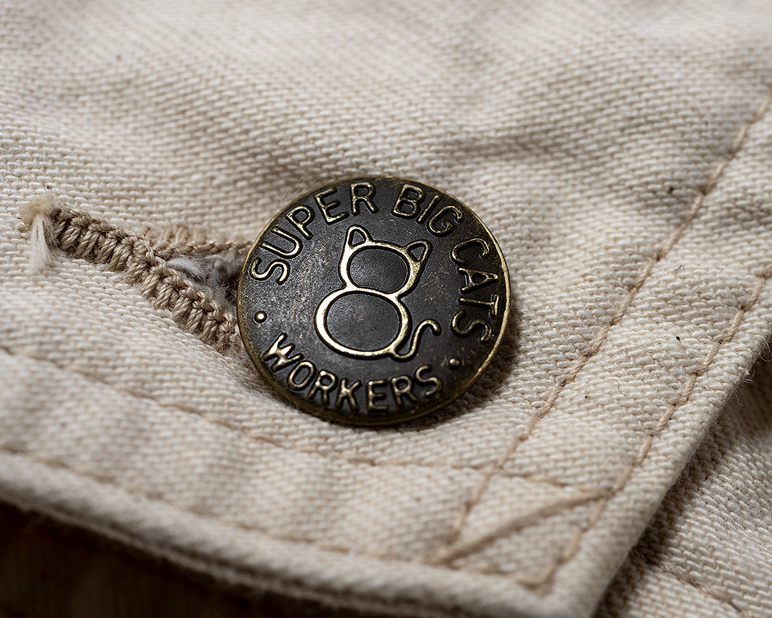 そこで、今回のシリーズは10オンス生地を使う。でもボタンに8と入れたい。悩みに悩んで8、8、8、自分に何か関係ある数字・・・そこでひらめきました。2022年8月についに我が家は8匹に猫が増えました。これだ!と一気にデザインしたのが上のボタンです。